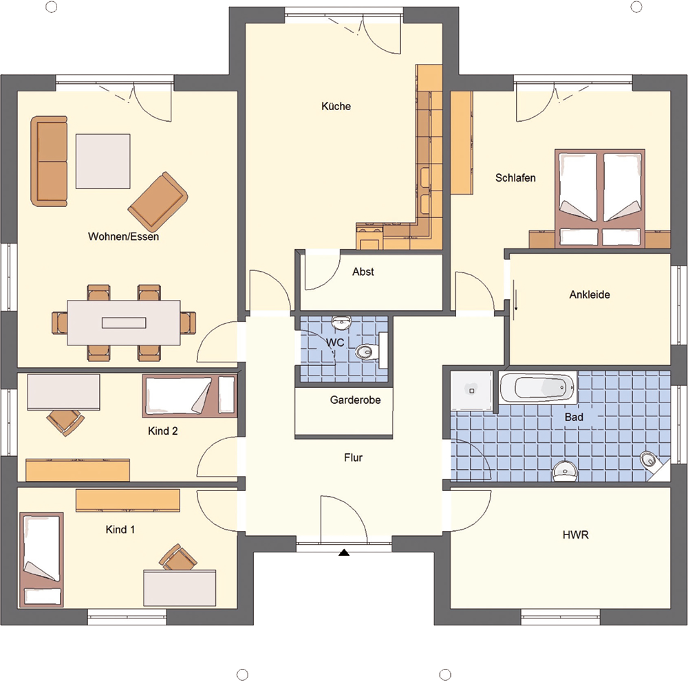 - Zusatzausstattungen wie Kaminzug oder elektrische Rollladen planbar (Mehrkosten).